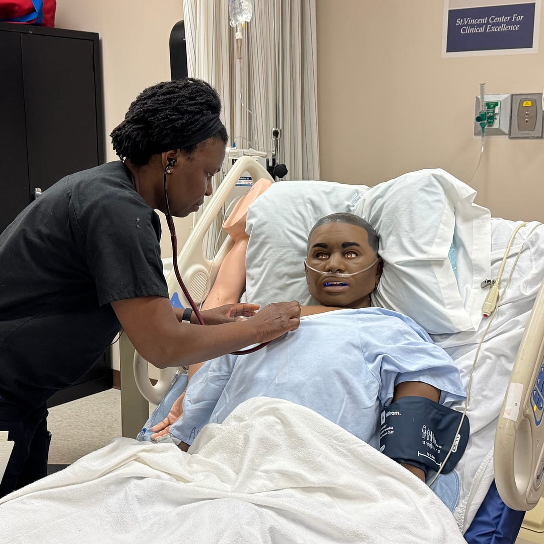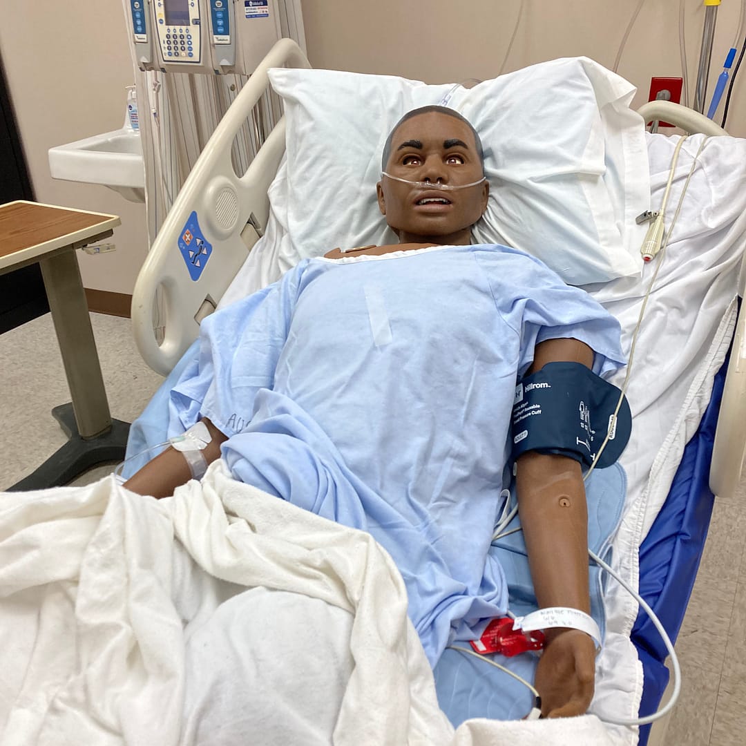 The hallmark of the simulation experience is interacting with the patient, who, in this case, is a state-of-the-art manikin, ready for treatment. “Simon,” as he is affectionately called by the School of Nursing students and faculty, is an extremely lifelike gold-standard feat of technology that allows students to practice hard skills, bedside manner, and situational awareness and management in an environment that is, ultimately, risk-free.
